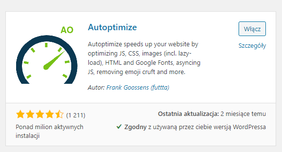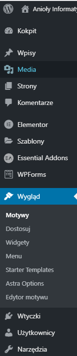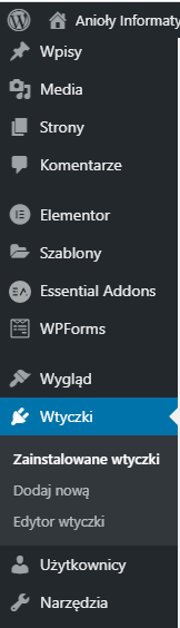 W panelu bocznym klikamy opcję Wtyczki. Następnie wybieramy opcję Dodaj nową. Naszym oczom ukaże się pełno różnego rodzaju wtyczek. Jednymi z bardziej przydatnych będą: Autoptimize, WPForms, Cookie Notice, WP Security. Natomiast jeżeli chcemy aby nasze strony miały lepszy wygląd a także więcej opcji jej rozbudowy, to możemy skorzystać z wtyczki Elementor. Jeżeli zdecydujemy się już na jakąś wtyczkę należy ją następnie aktywować poprzez przycisk Włącz.
