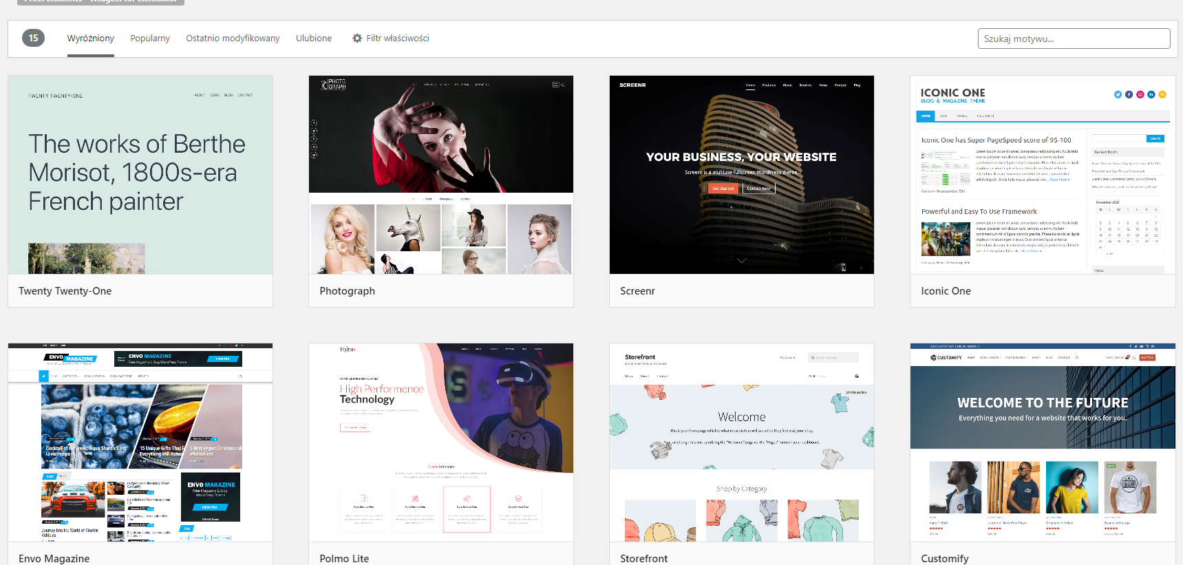 Na panelu bocznym po lewej stronie znajduje się zakładka Wygląd. Aby ją rozwinąć trzeba w nią wejść i wybrać opcję Motywy. Następnie na środku ekranu pojawi się strona z różnymi motywami do zainstalowania. Wybór motywu zależy już od Waszego wyboru.